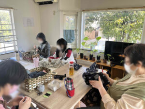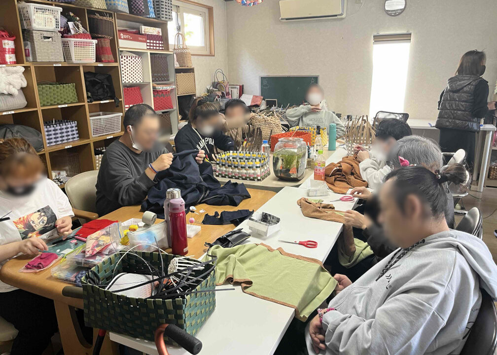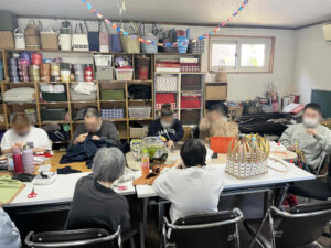 就労継続支援B型 うさぎ B型事業所での作業 着物生地のリメイク ・着物をほどく作業 ・型を取る作業 ・ミシンでぬう作業 ・完成した商品を袋に入れる作業 アクセサリー作成 ・ヘアアクセサリー ・イヤリング・ピアス アイスのパッケージ貼り ラーメンのパッケージ作り お茶パックの袋詰め カゴ、バッグ作り (PPバンド、エコクラフト) つまみ細工 ・五月人形、おヒナ様、しめ縄、etc 季節の飾り、小物 あみ物 (組みひも含む) 作業の様子